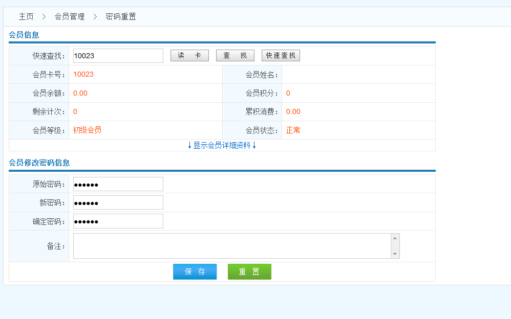 會(huì)員信息 可以通過刷卡或者錄入卡號(hào)或者通過快速查找