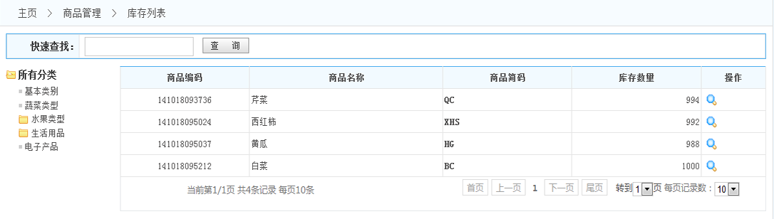 庫存列表:點(diǎn)擊進(jìn)入庫存列表信息頁面 如下圖: