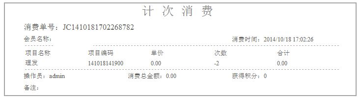 如果有勾選打印小票,則在點擊結算消費成功后,將會打印出此次計次消費的詳細信息;